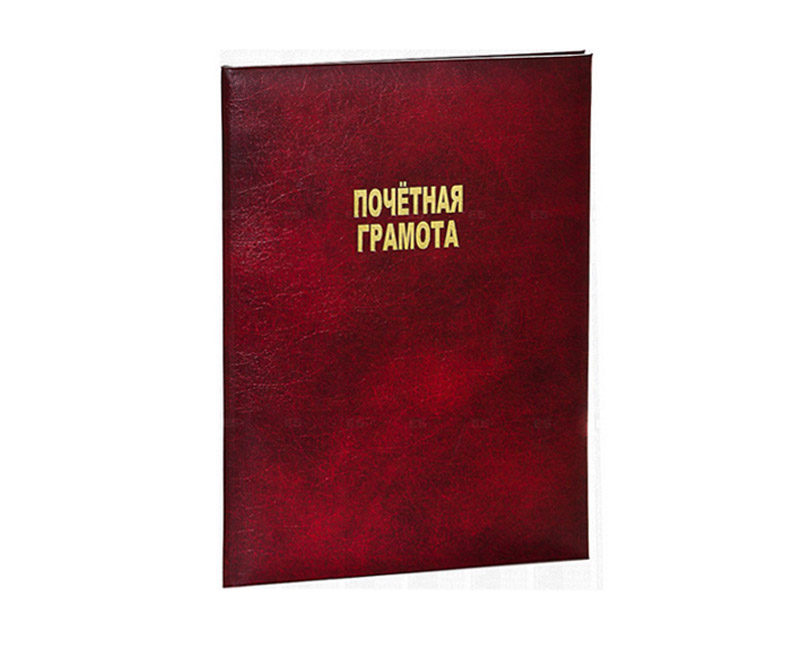 Адресная папка выполнена в формате А4. Сделана из прочного картона, который покрыт бумвинилом. На обложке орнамент и надпись, сделанные золотым тиснением.