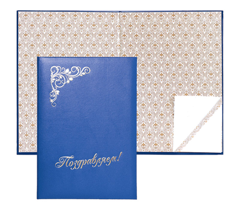 Папка адресная "deVENTE" A4 бумвинил синяя с нанесением "Поздравляем"