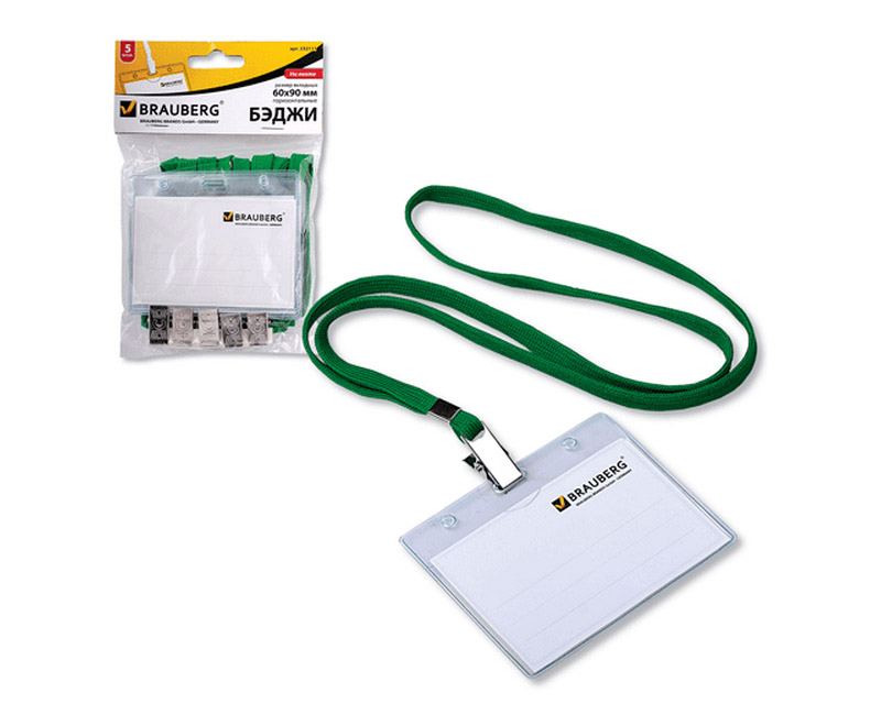 Бэджи BRAUBERG на текстильной ленте для именных карточек. Карман из мягкого прочного пластика гарантирует долгий срок службы.