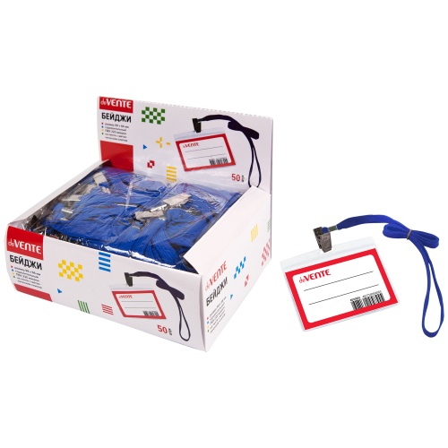 Код товара: 00-37852Бэдж 54*85мм ErichKrause горизонтальный твердый пластик ,синяя лента 63719
