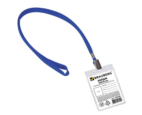 Код товара: 00-00100418Бэдж 105х75мм BRAUBERG вертикальный жесткокаркасный без держателя синий 235755