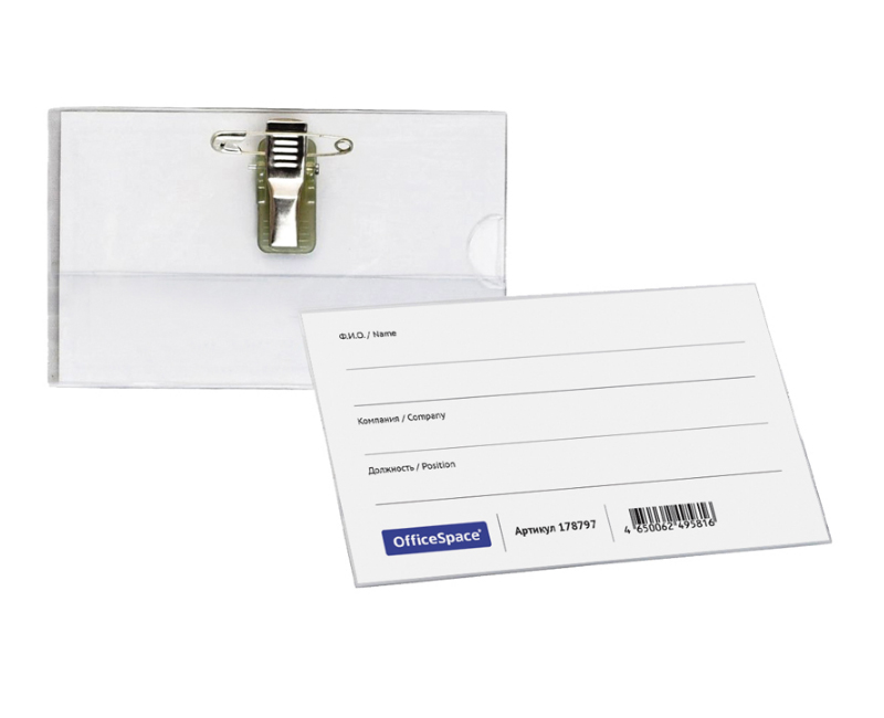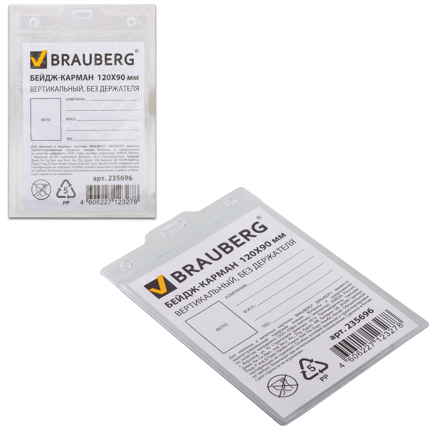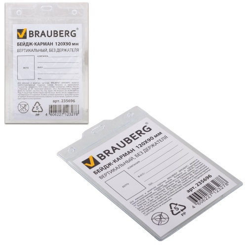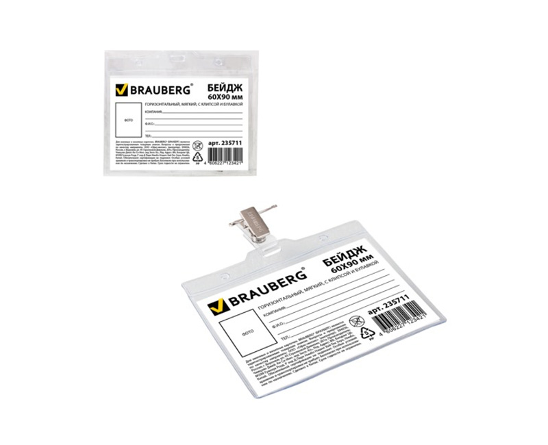 Код товара: 34709Бэдж 60*90мм BRAUBERG горизонтальный, мягкий, с клипсой и булавкой, 235711