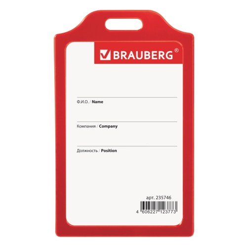 Код товара: 00-36582Бэдж 85*55 мм BRAUBERG вертикальный жесткокаркасный без держателя красный 235746