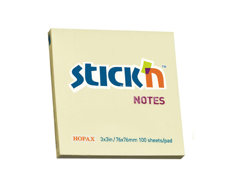 Блок самоклеящийся бумажный Stick`n 21007 76x76мм 100лист. 70г / м2 пастель желтый