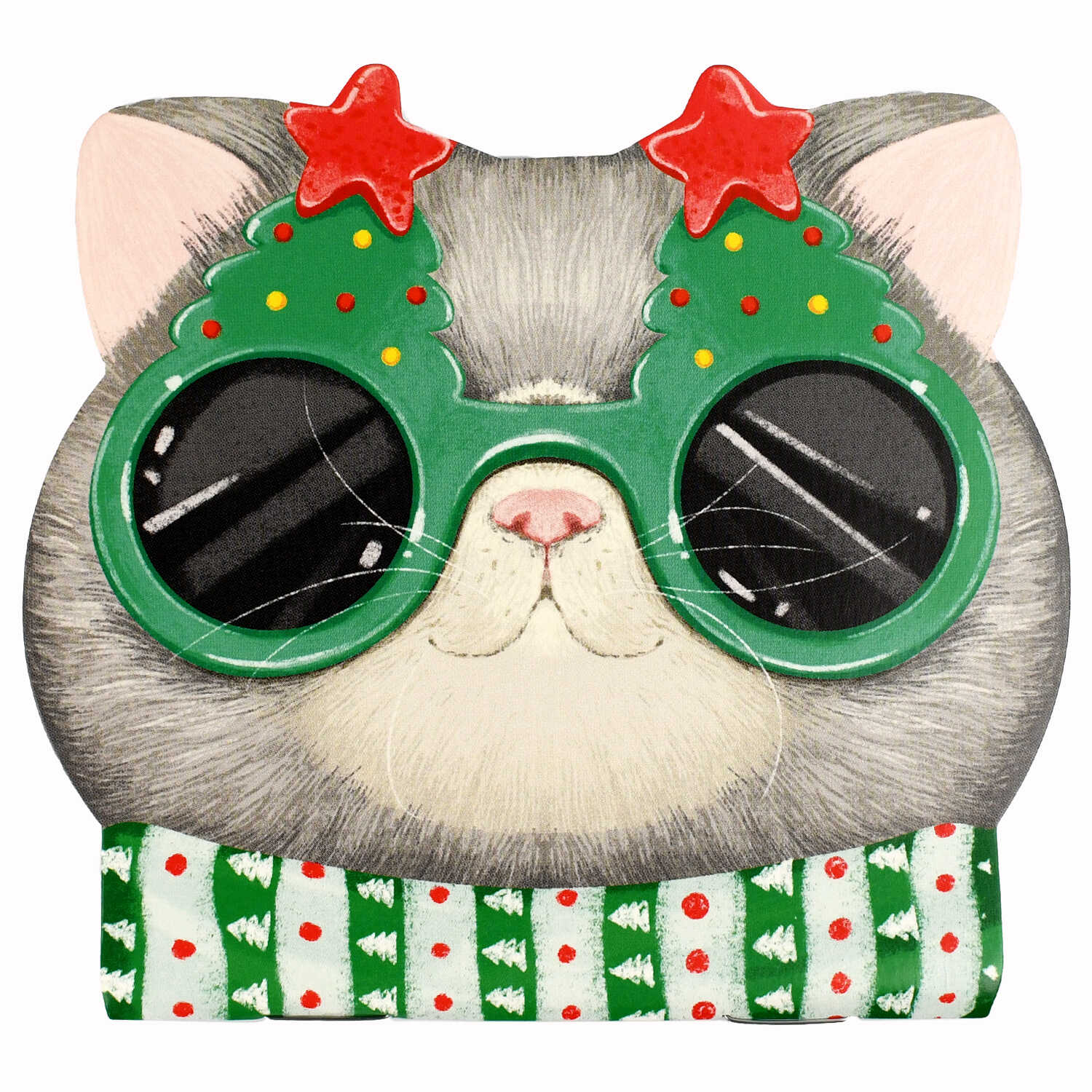 Код товара: 00-84012Блокнот 30л 120*117мм на скрепке Новогодний серый кот, фигурная вырубка 69608