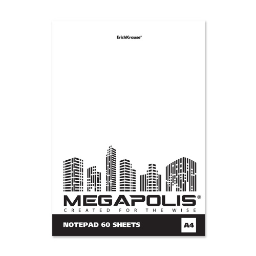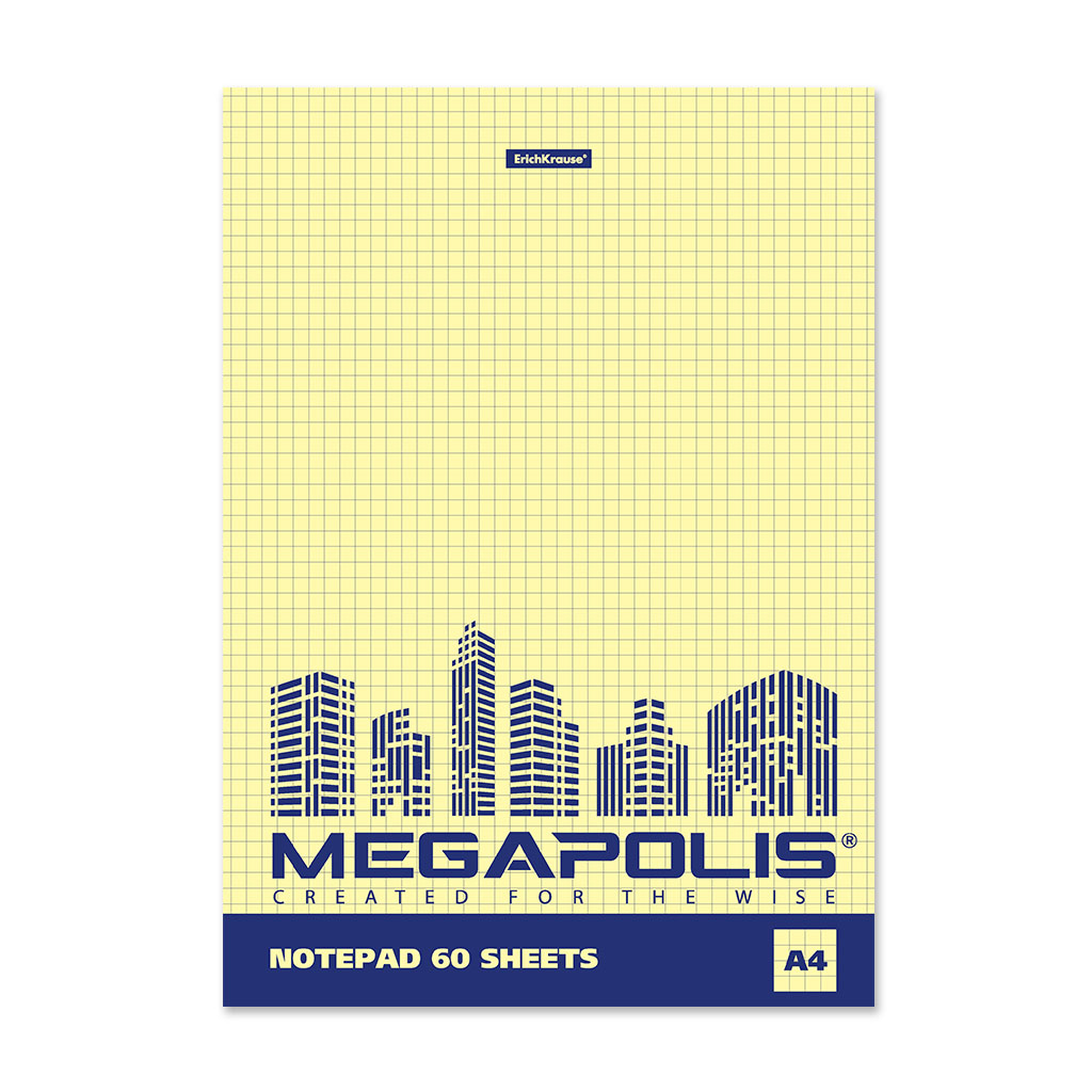 Код товара: 00-84435Блокнот А4/ 60л на склейке ErichKrause Megapolis Yellow Concept без линовки 49801