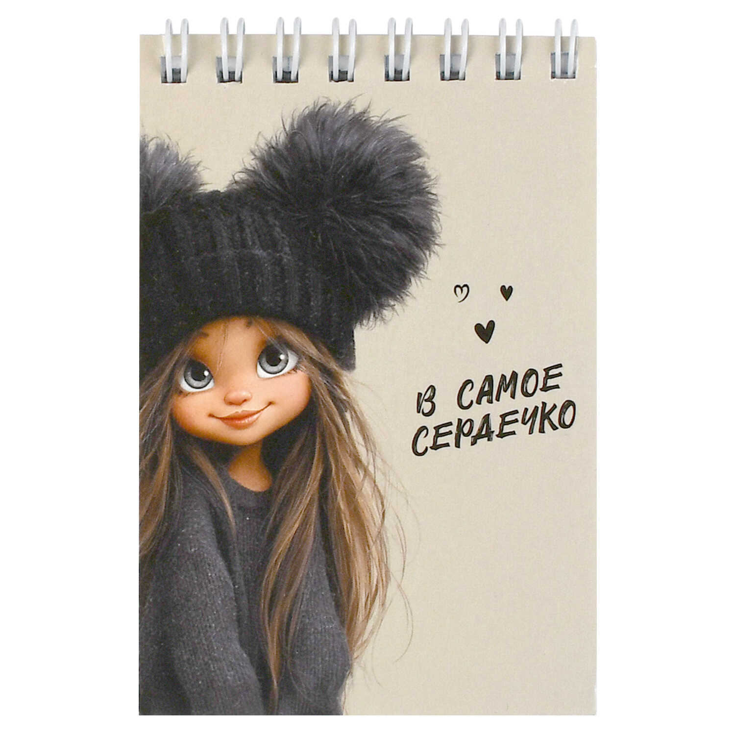 Блокнот, А7, 40 л, арт. 73419 ДЕВЧОНКА В ШАПКЕ / Блок - белый офсет 65 г/м², клетка, гребень по короткой стороне, УФ-лак сплошной,