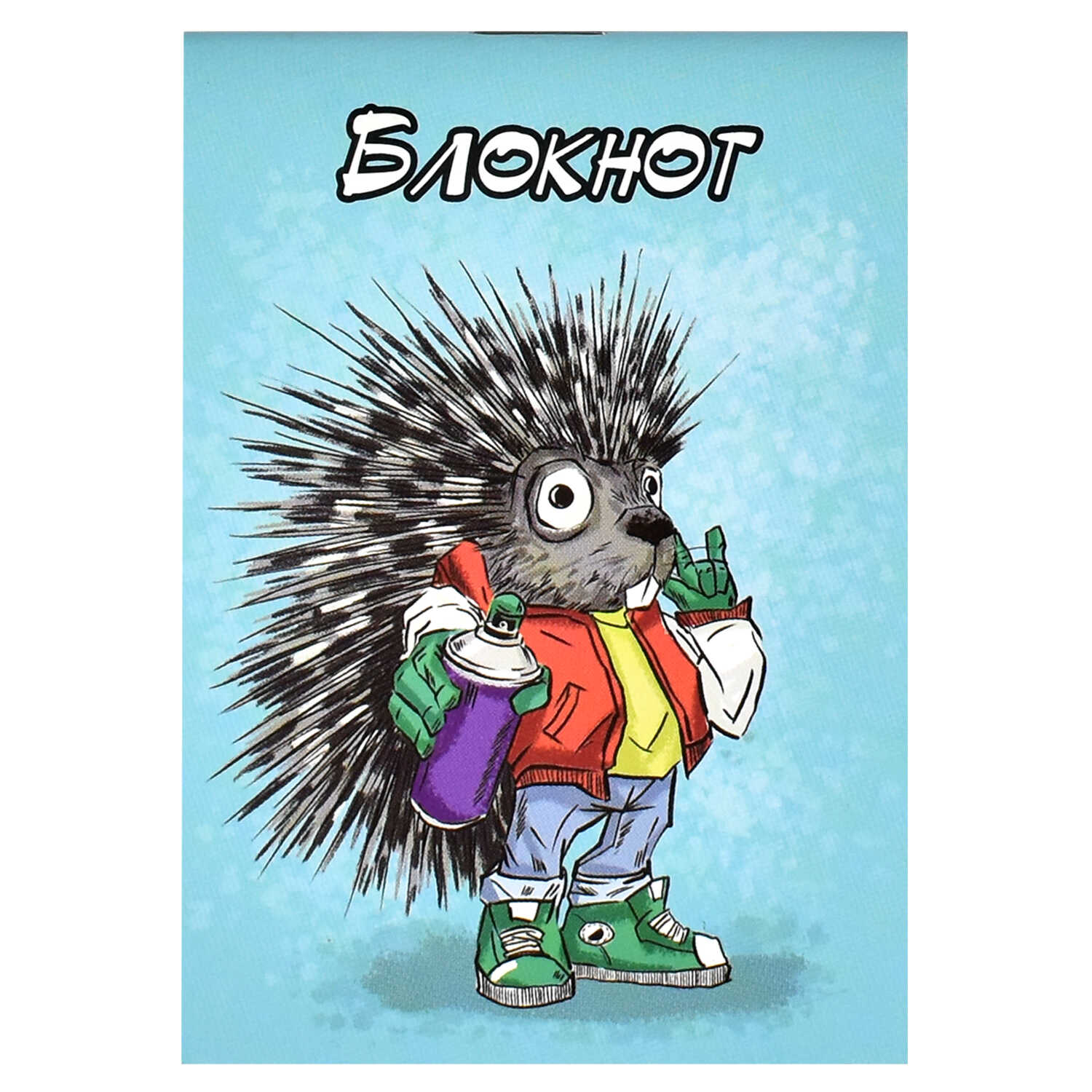 Блокнот, А7, 32 л, арт. 63024 КРУТОЙ ЁЖИК / Блок - белый офсет 60 г/м², клетка, мягкий переплёт (1 скоба),
