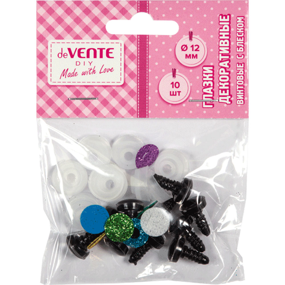Глазки декоративные с блеском "deVENTE. DIY Shine" 10 шт, 12 мм, круглые пластиковые, винтовые с фиксатором и блестящей вставкой, цвет ассорти в пластиковом пакете с блистерным подвесом