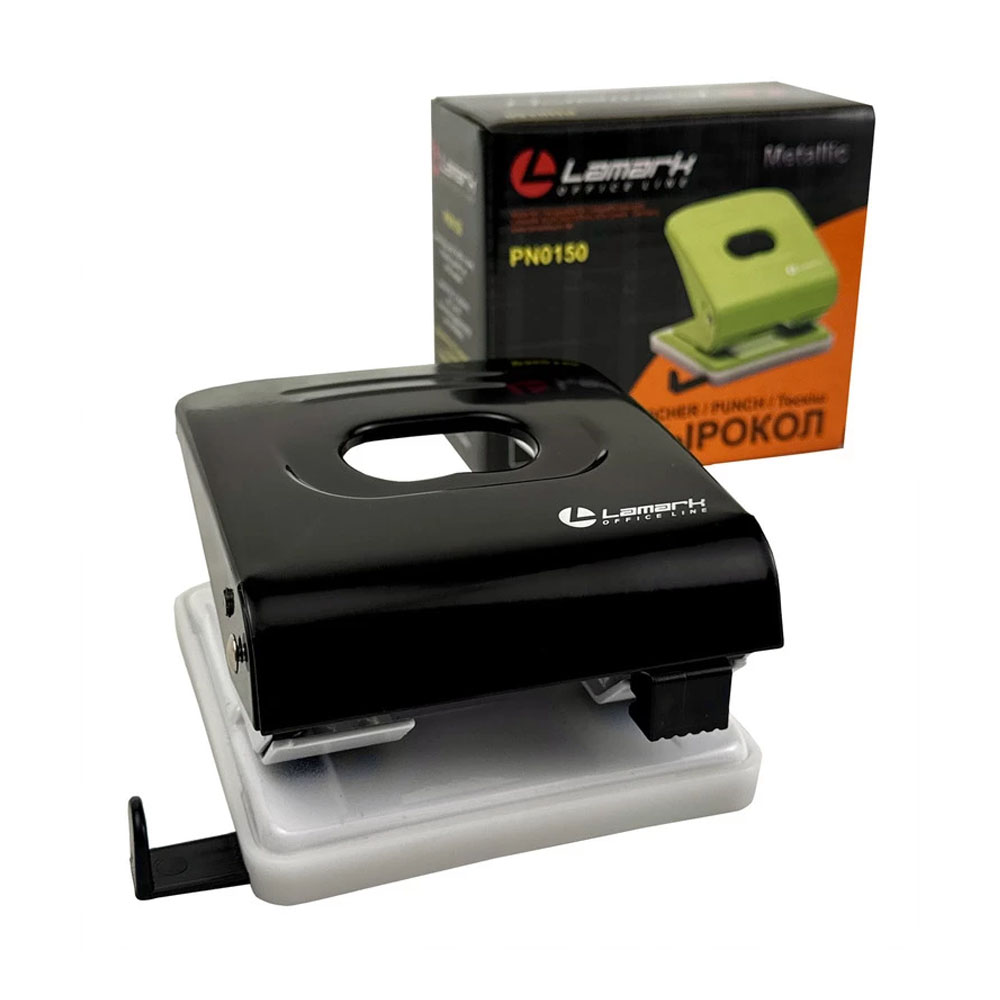 Полностью металлический дырокол Lamark серии Metallic на 2 отверстия диаметром 5,5 мм оснащен линейкой деления на форматы и пластиковым поддоном-основанием для сбора конфетти. Классический дизайн. Усиленные пружины и ножи. Расстояние между отверстиями 80 мм. Мощность пробивания до 30 листов. Цвет черный. Поставляется в цветной картонной коробке.