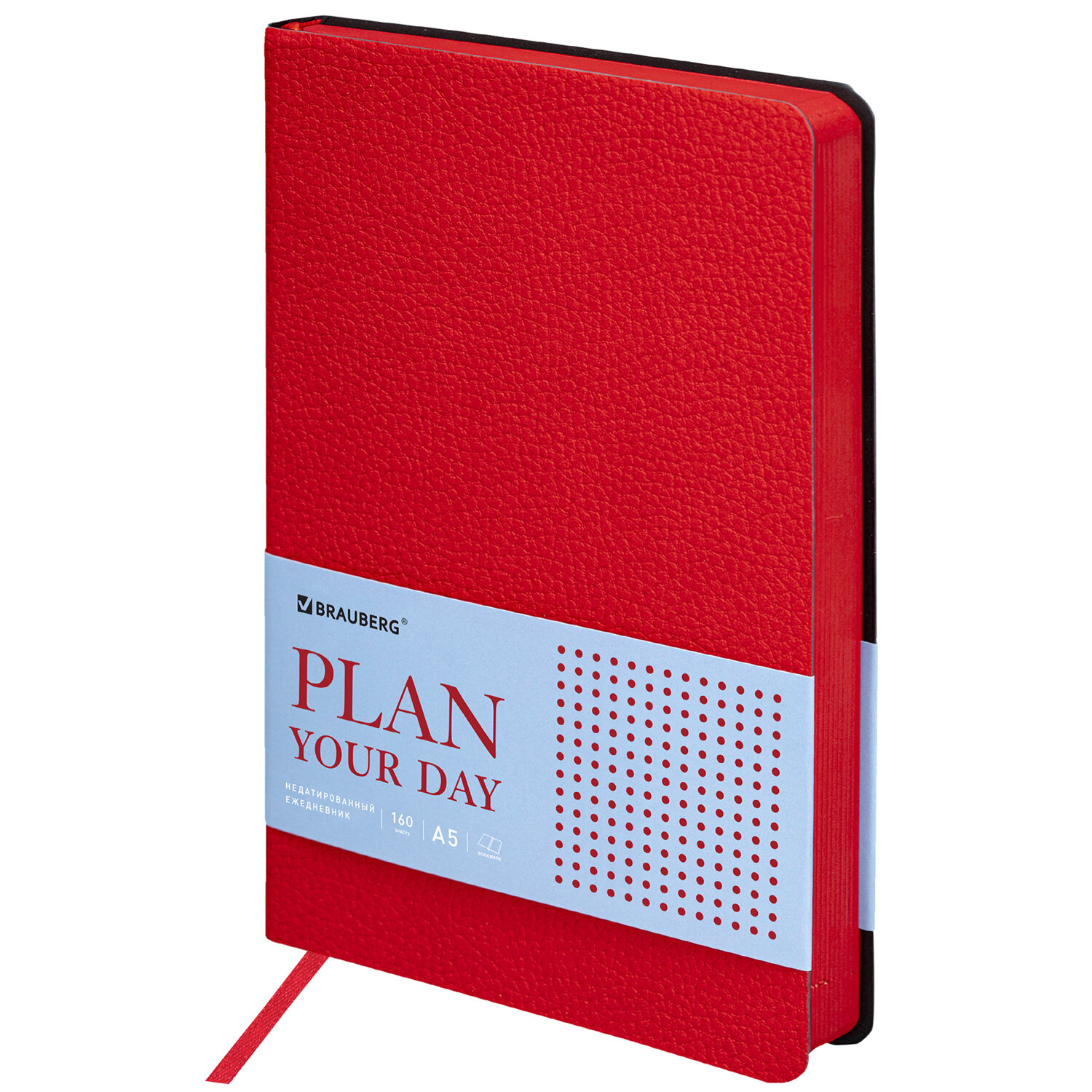 Внутренний блок включает 160 листов тонированной бумаги плотностью 70 г/м2. Каждая страничка имеет перфорированный угол. Благодаря стандартному формату А5 (138х213 мм) ежедневник удобно использовать как в офисе, так и на выездных деловых встречах. Мягкая (интегральная) обложка стилизована под фактурную кожу. Подходит для горячего тиснения. Дополнением является закладка-ляссе, с помощью которой при необходимости можно быстро открыть ежедневник на нужной странице. Помимо прочего ежедневник снабжен справочным материалом. Выполнен в насыщенном красном цвете.