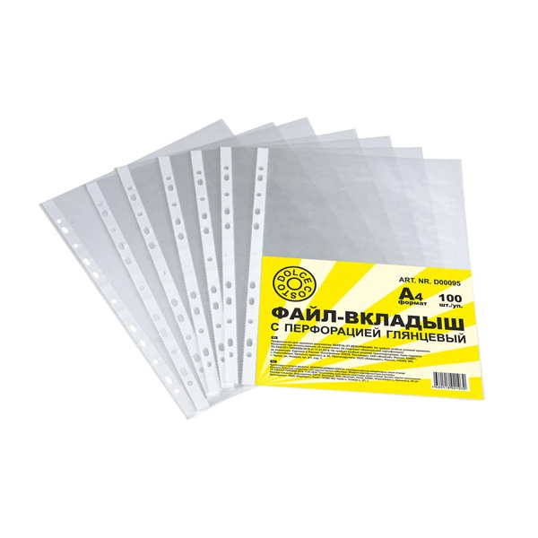 Код товара: 00-107829Файлы с перфорацией А4 Dolce Costo Эконом глянцевые 100шт/упак D00095