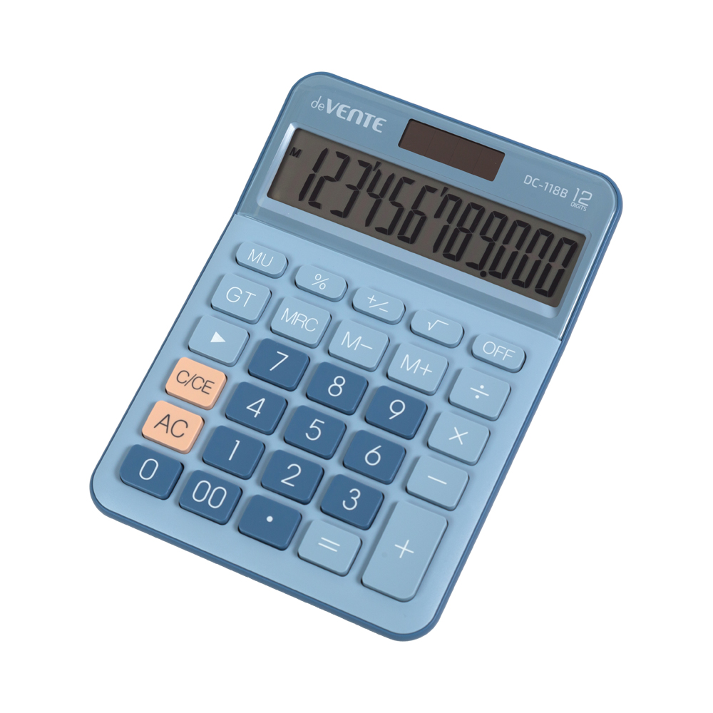 Код товара: 00-83680Калькулятор настольный deVENTE DC-118B (126*175*42мм) 12 разр.,голубой и синий 4031345
