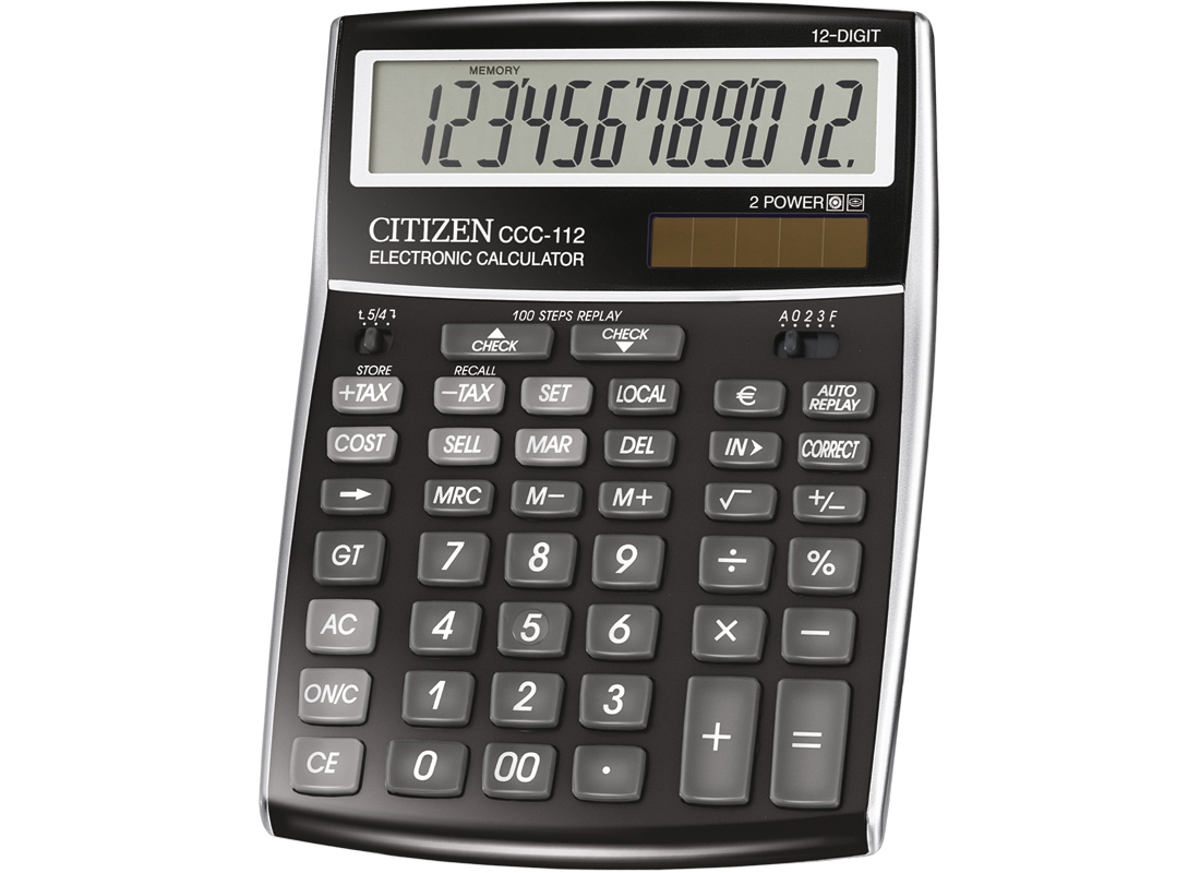 вычисление процентов, проверка и исправление, себестоимость, цена, маржа, округление значения, смена знака и счет элементов. Три клавиши памяти, финансовые функции, пересчет курса валют, налоговые функции.