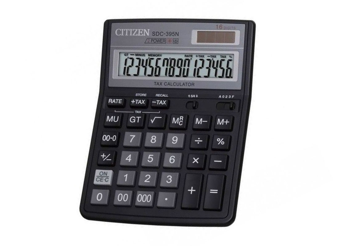 Калькулятор SDC-395N CITIZEN, 16-разрядный, особенности/доп. информация 2-е питание, 000, 00, TAX, mark up, GT, A0234F.