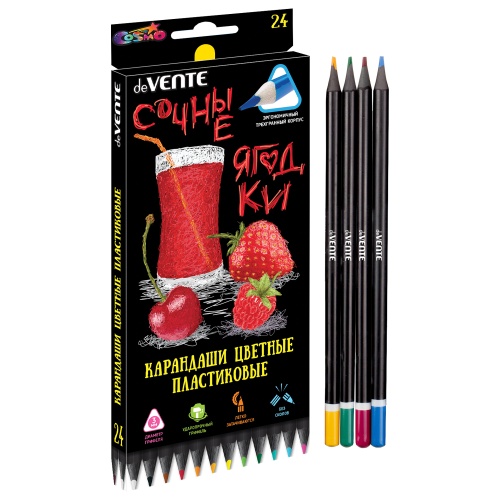 Код товара: 00-115497Цветные карандаши 24 цв. deVENTE Juicy Black 2М пластиковые 5024119