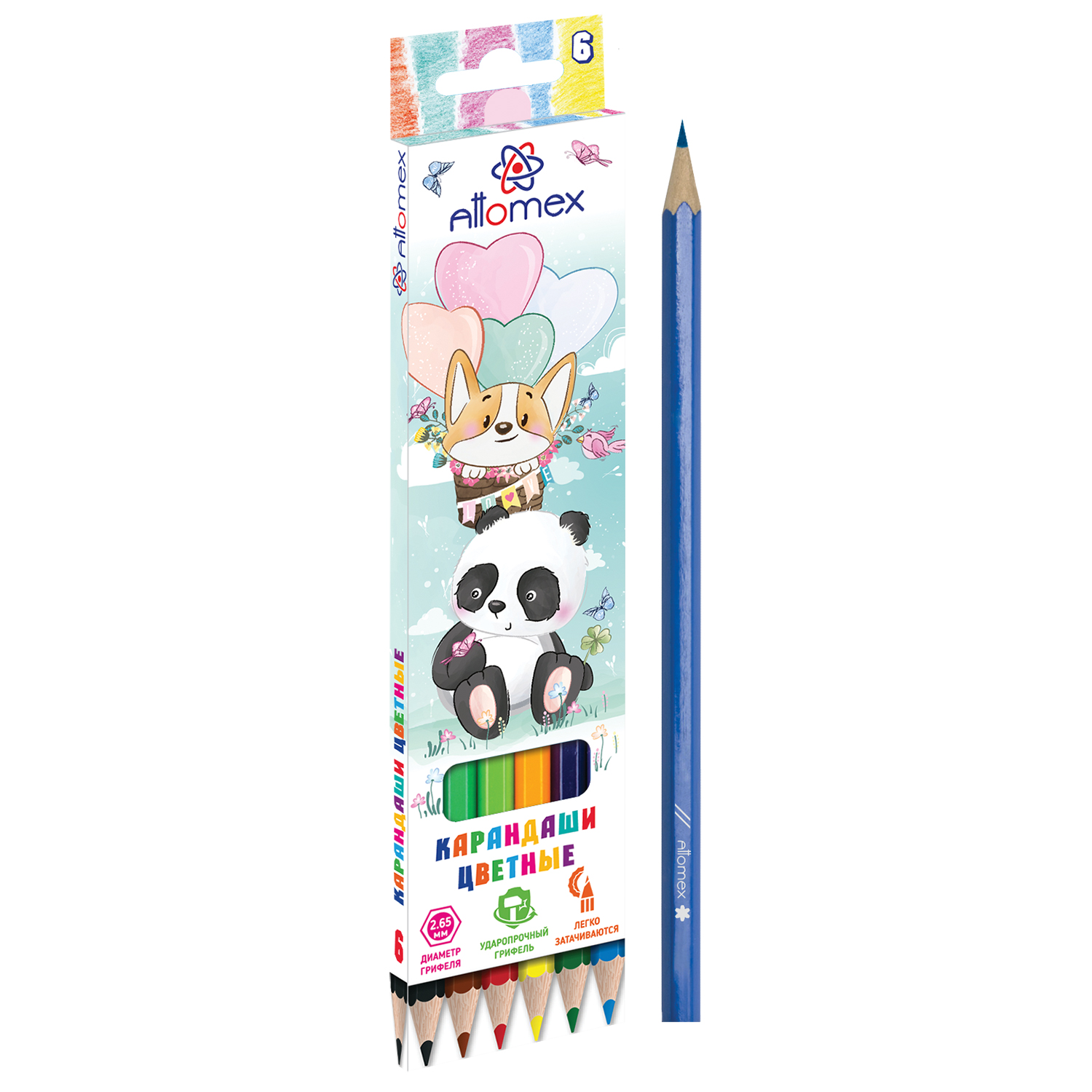 Карандаши цветные "Attomex. Zoo" 06 цветов, М, диаметр грифеля 2,65 мм, шестигранные, в картонной коробке