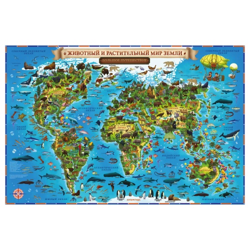 Карта Мира для детей Животный и растительный мир Земли 59*42см Globen интерактивная КН005