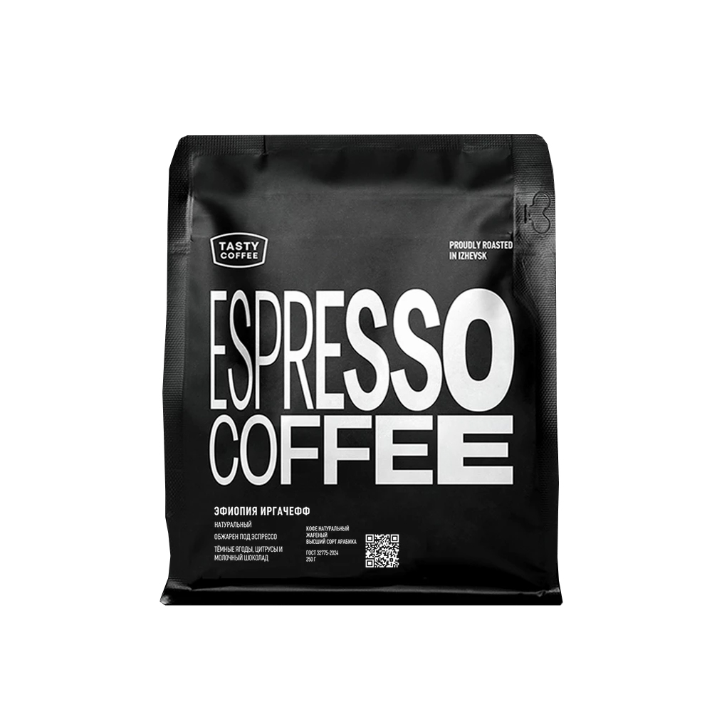 Код товара: 00-108681Кофе в зернах Tasty (Тейсти) моносорт эспрессо Эфиопия Иргачефф 100% арабика 250г