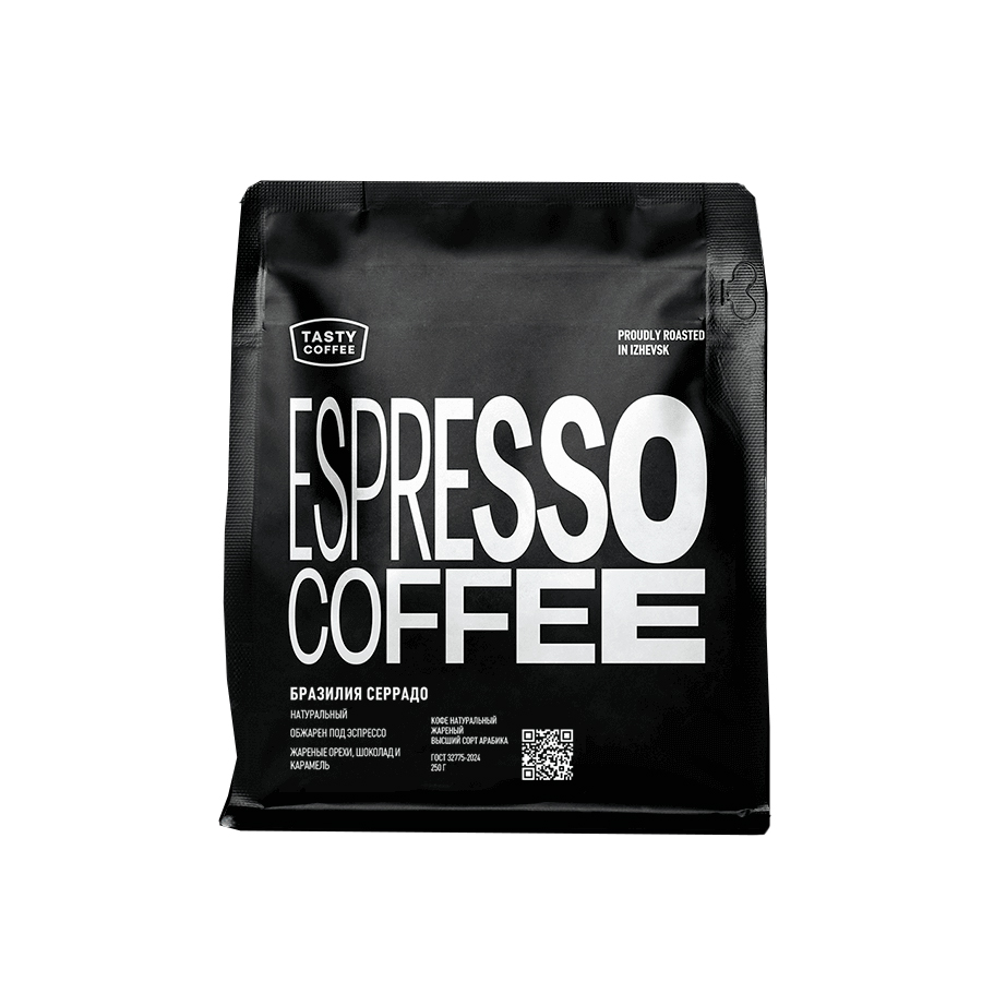Код товара: 00-00106138Кофе молотый Tasty (Тейсти) моносорт эспрессо Бразилия Серрадо 100% Арабика 250г