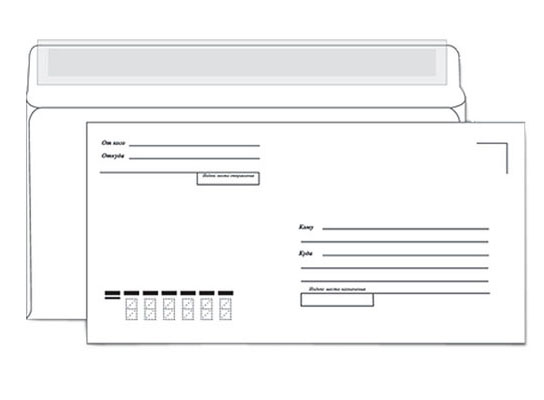 Конверт почтовый Евро предназначен для рассылки писем, открыток и т.п. Размер - 110х220 мм. Формат Е65. Плотность бумаги - 80 г/м2. Наличие адресных указателей: "Куда", "Кому", "Откого", "Откуда". Отрывная полоса.