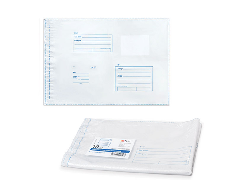 Предназначены для упаковки всех видов почтовых отправлений (писем, бандеролей, мелких посылок). Изготовлены из полиэтилена высокой прочности. Защищают вложение от влаги и механических повреждений. Нанесение информации возможно шариковой ручкой.