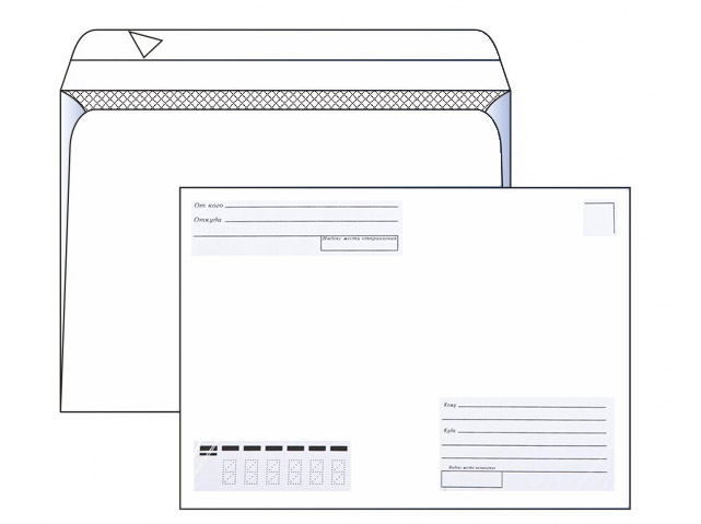 Конверт почтовый формата С4 предназначен для рассылки документов, журналов и другой корреспонденции. Размер - 229х324 мм. Плотность бумаги - 100 г/м2. Наличие адресных указателей: "Куда", "Кому", "От кого", "Откуда". Отрывная полоса. Формат С4.