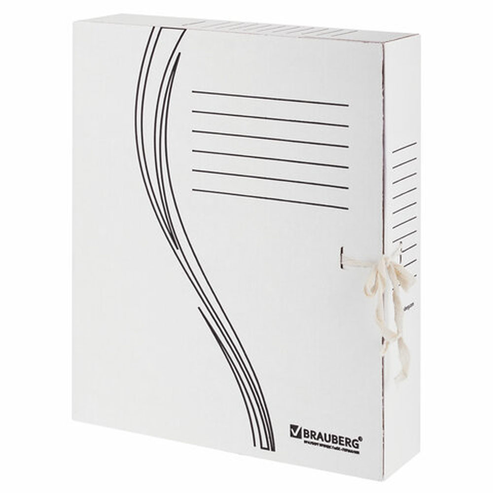 Код товара: 00-87965Короб архивный 75мм картон BRAUBERG с завязками белый/синий до 750л. 124853