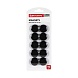 Диаметр магнита составляет 30 мм. 10 штук в комплекте. Надежно удерживаются на любой железной или стальной поверхности. Магниты круглой формы выполнены из пластика черного цвета.