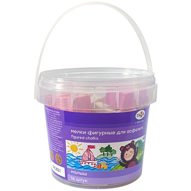 Код товара: 00-108551Мелки цветные для асфальта 16шт. Гамма Малыш, фигурные, пластиковое ведро 150220217