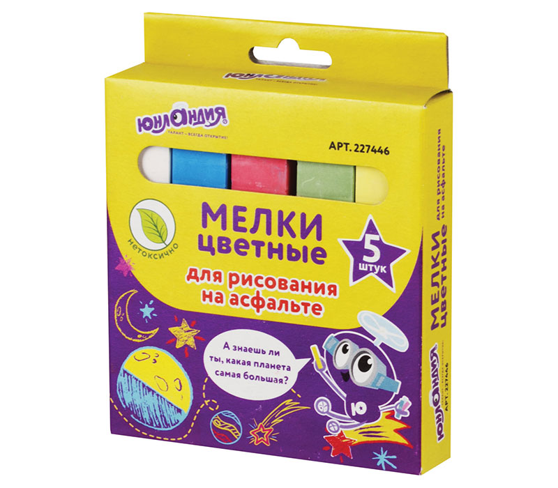 Код товара: 00-115417Мелки цветные для асфальта 5цв. Юнландия Юнландик и космос 227446