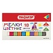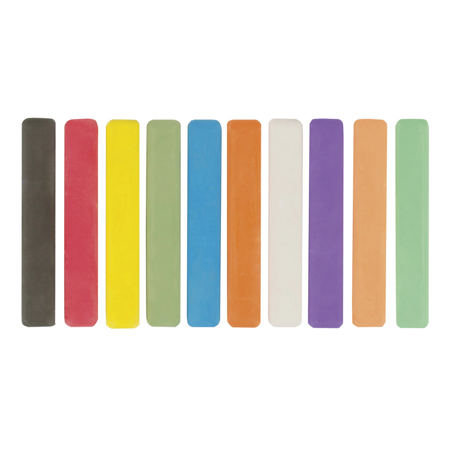 Изготовлен из высококачественного природного сырья без химических добавок. Не содержит твердых включений и не портит поверхность досок. Благодаря квадратной форме легко ложится в руку. Мел средней твердости. Не оставляет царапин. Легко смывается водой. Длина - 80 мм, диаметр - 13 мм. В наборе 9 цветных мелков и 1 белый, всего - 10 штук.