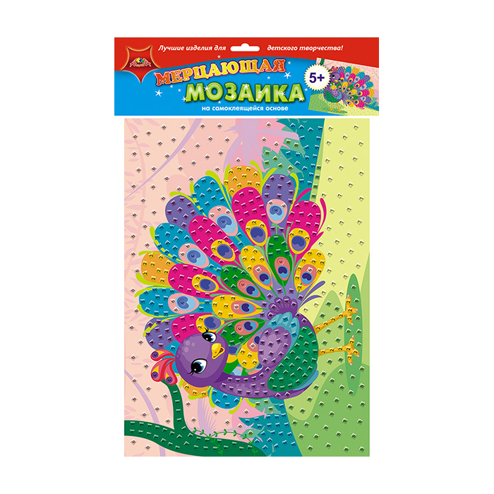 Код товара: 00-38229Набор для творчества Мозайка мерцающая на самоклеющейся основе А3 Волшебный павлин С1573-95