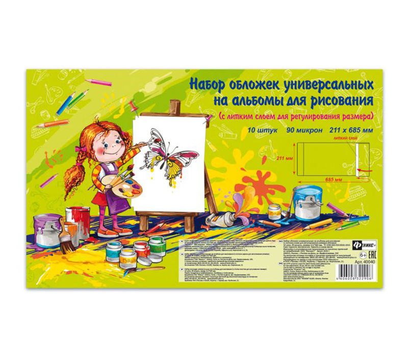 Код товара: 00-30873Обложка 211*685 для альбомов по рисованию 90мкм Феникс+ липкий слой 40040
