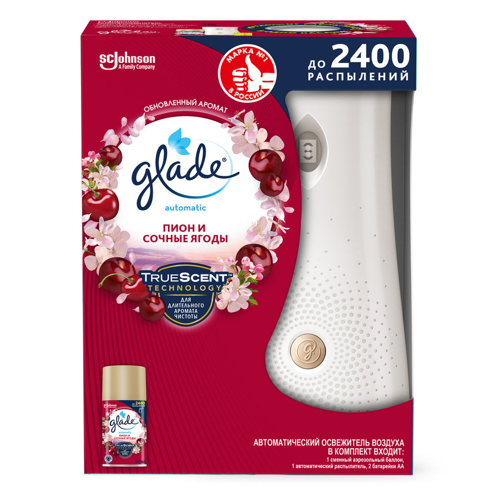 Освежитель воздуха GLADE Automatic диспенсер+картридж Пион и сочные ягоды 269мл 602181