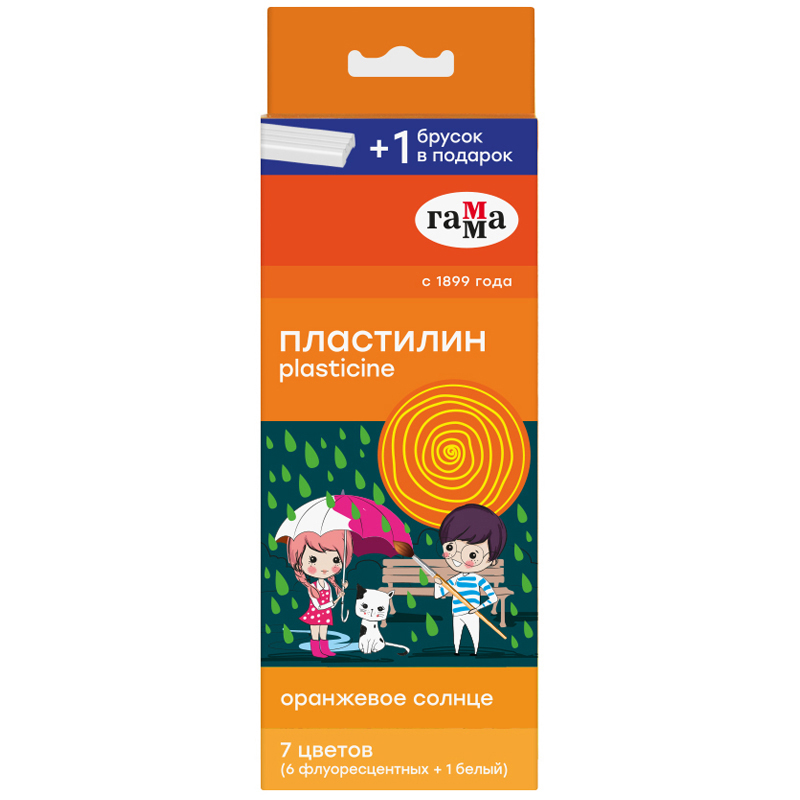 Код товара: 00-27844Пластилин 7цв. ГАММА Оранжевое солнце,6 флуор. + 1 белый, со стеком 150320221