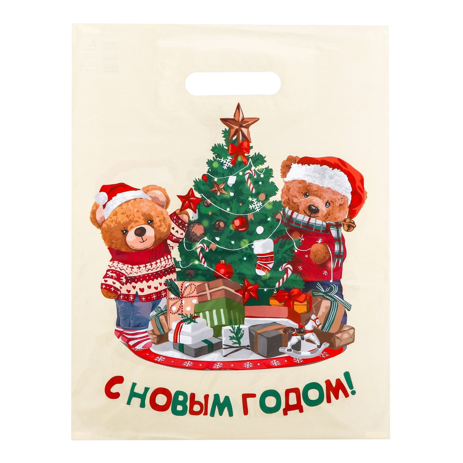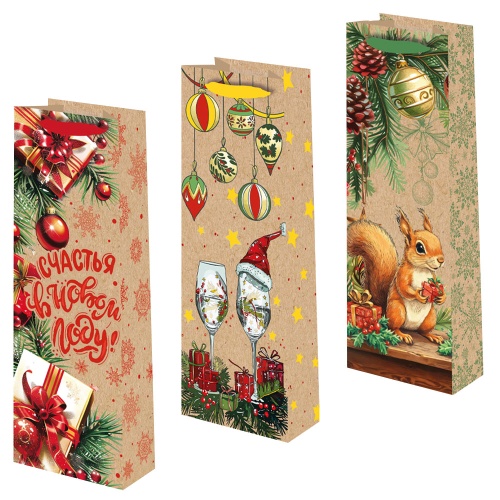 Пакет подарочный крафт 12*36*8см Новый год Ч54951