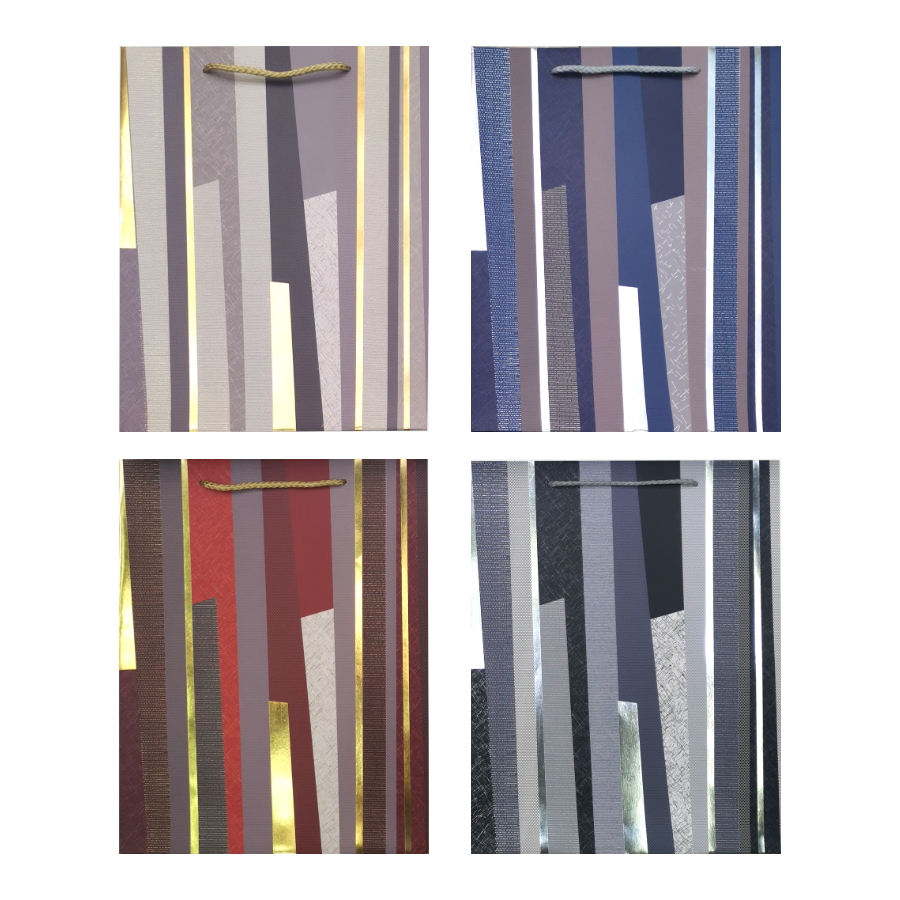 Пакет подарочный бумажный вертикальный, размер 26x32x10 см, тиснение фольгой, бумага 210 г/м², ассорти 4 дизайна