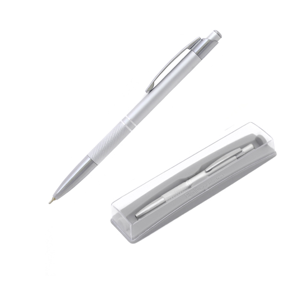 Код товара: 00-35173Ручка шариковая подарочная Flair MIAMI,серебряный метал.корпус, синяя, футляр