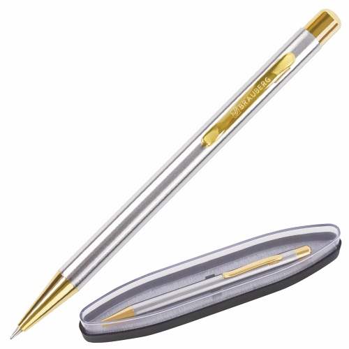 Код товара: 00-00098111Ручка подарочная шариковая BRAUBERG Пиано синяя, корпус серебристый с золот.,линия 0,5мм, 143472