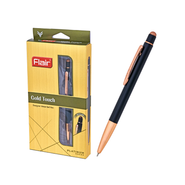 Код товара: 00-38476Ручка шариковая подарочная Flair GOLDEN EVE черный метал. корпус, цв.чернил синий