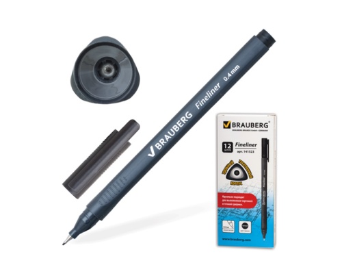 Код товара: 51037Ручка капиллярная BRAUBERG Контроль/Control 0,4мм черная, трехгранная 141523