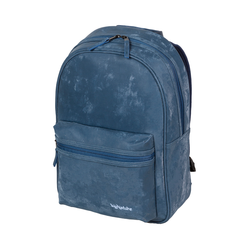 Рюкзак "deVENTE. sigNATURE" 40x28x12 см (14 л) 500 г подростковый, текстурированная искусственная кожа, противоугонная система анти-вор с антивандальной молнией, 1 отделение на антивандальной молнии с плотным карманом для ноутбука до 15 дюймов и книг и фиксатором на липучке, внутри органайзер на молнии, передний карман с антивандальной молнией, багажная лента, эргономичная уплотненная вентилируемая спинка и вентилируемые лямки, петля для повеса, синий