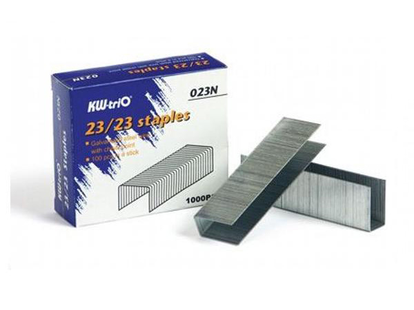 Скобы KW-trio 023N скобы для степлера 23/23 до 240 листов, изготовлены из специальной cтали. Заточенные, что облегчает сшивание. 1000 скоб в картонной коробочке.