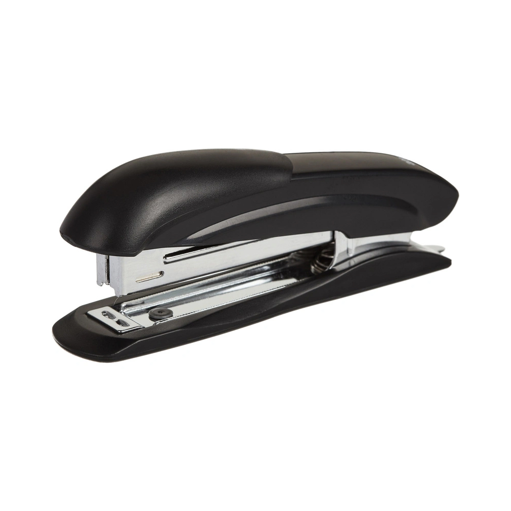 Степлер Attache предназначен для надежного и качественного скрепления документов в офисе и дома. Настольный степлер выполнен в металлическом корпусе черного цвета с черными пластиковыми вставками. Рабочие компоненты изготовлены из высококачественной стали. Степлер Attache одновременно сшивает до 12 листов бумаги плотностью до 80 г/кв.м. Степлер скрепляет бумагу закрытым типом сшивания, при котором ножки скобы загибаются внутрь. Это дает возможность надежно хранить сшитые документы на протяжении длительного времени. Модель оснащена встроенным антистеплером. Степлер совместим со скобами № 10. Глубина закладки бумаги — 50 мм (5 см). Вместимость лотка для скоб: 100 скоб размером № 10. Размер изделия: 110×46×31 мм.