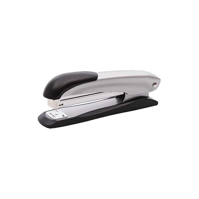 Степлер Lamark ULRICH мощностью сшивания до 30 листов имеет полностью металлические механизм и корпус. Цвет серый. Глубина захвата листов до 90 мм. Пластиковые детали черного цвета: нескользящее основание и декоративная накладка на корпусе. Степлер оснащен индикатором наличия скоб, поворотной пластиной для различных вариантов сшивания и встроенным антистеплером. Поставляется в индивидуальной цветной картонной коробке. Использовать скобы №24/6 и 26/6.