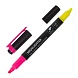 Двусторонний текстовыделитель неоновых цветов - желтый/розовый - обладает круглой формой корпуса диаметром 11 мм. Корпус тектовыделителя оснащен удобной зоной захвата. Скошенный наконечник имеет толщину линии письма от 1 до 4 мм, что обеспечивает удобство при работе с текстом, напечатанным мелким шрифтом, или таблицами. Текстовыделитель обладает экономным расходом чернил. Светоустойчивые чернила на водной основе не выцветают даже на открытом солнце и не размазываются в процессе использования. Изделие не перезаправляется. Цвет клипа соответствует цвету чернил.