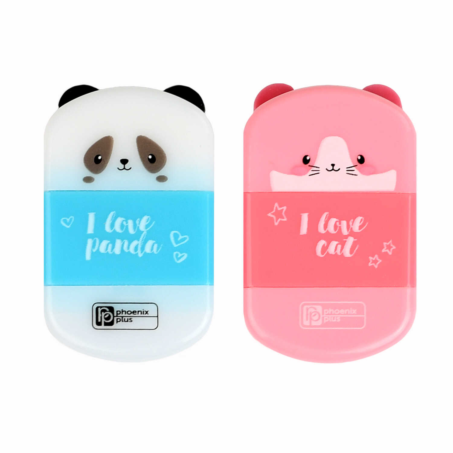 Точилка, арт.69645/ 16 КОТ И ПАНДА (шоу-бокс, 16 шт., ассорти, полистирол, белый, бирюзовый, розовый, 1 отверстие (-я) диаметром: 8 мм, 5,1x3,2x1,8 см, шелкография, с ластиком, контейнер для стружки: есть).
