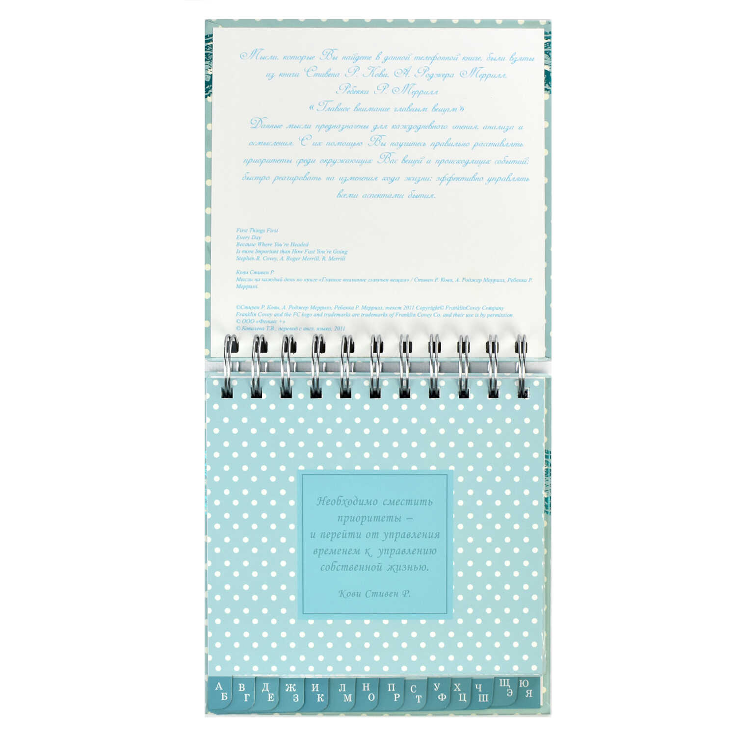 Телефонная книжка арт.32065 НЕЖНОСТЬ(с алфавитной вырубкой, 150*150 мм, 14 разделит, 56 л офсет, евроспираль, обложка 7БЦ, тисн.бирюзовой фольгой)