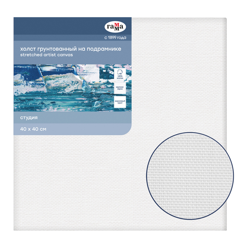 Код товара: 00-36266Холст на подрамнике Гамма Студия 40*40см 100% хлопок 400г/м2 крупное зерно 301020206